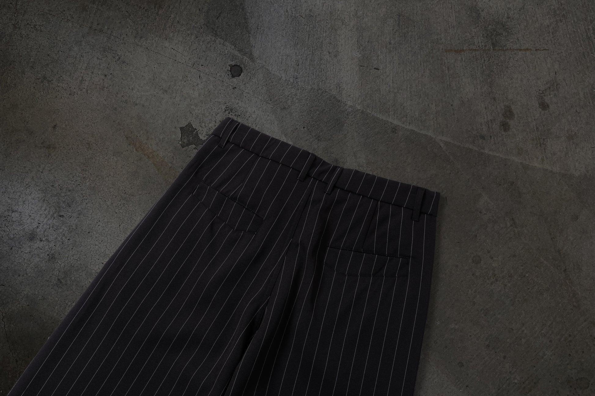 WIDE-LEG DRESS PANTS (PINSTRIPED BLK/WHT)